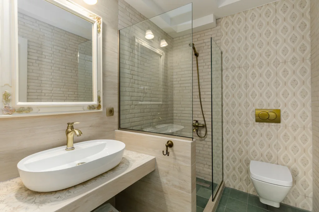 Τα σύγχρονα μπάνια είναι εξοπλισμένα με κορυφαίες ανέσεις, όπως ντουζιέρες με πολυτελή προϊόντα περιποίησης, εξασφαλίζοντας μία απολαυστική εμπειρία χαλάρωσης. Κάθε σουίτα διαθέτει ιδιωτικό μπαλκόνι ή βεράντα, όπου οι επισκέπτες μπορούν να απολαύσουν τον πρωινό τους καφέ ή να χαλαρώσουν με θέα το απέραντο γαλάζιο του Αιγαίου ή τα καταπράσινα τοπία της περιοχής.